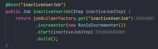get()메소드는 "inactiveUserJob"이라는 Job을 만들어 반환한다.