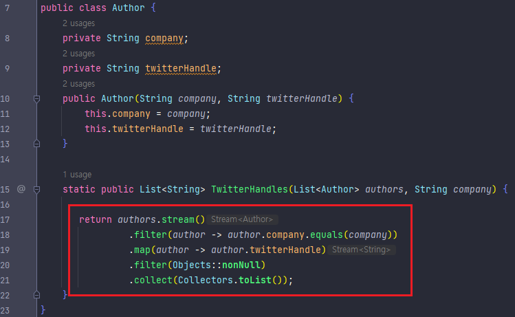 - "반복문을 파이프라인으로 바꾸는 (Replace Loop with Pipeline)" 리팩토링을 적용하면
