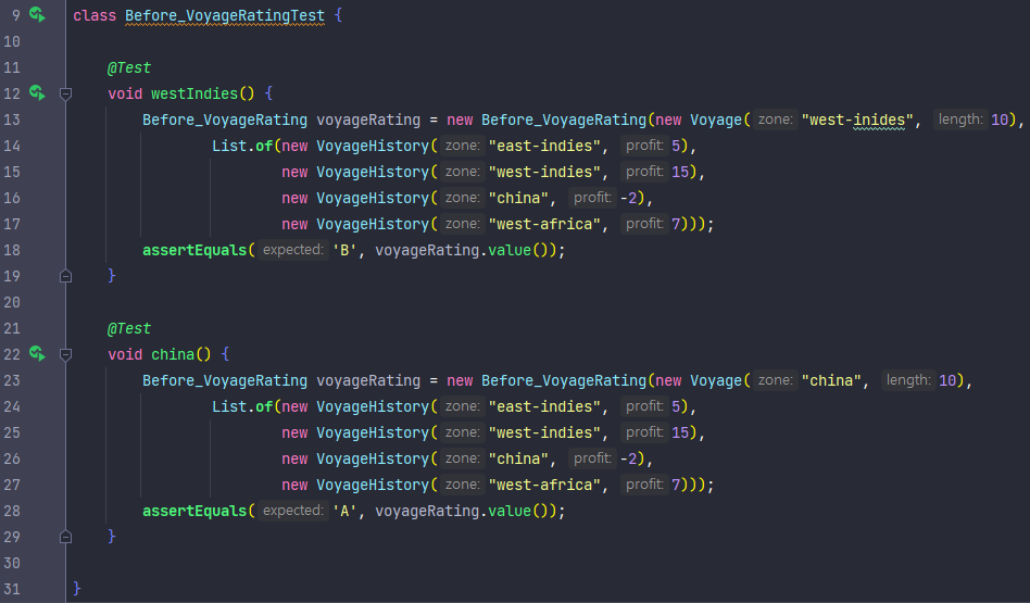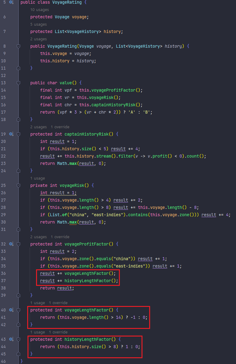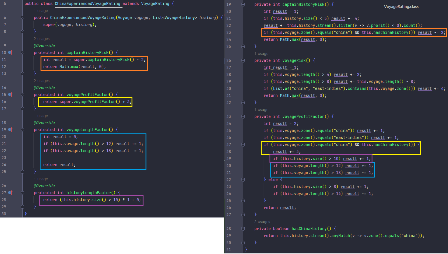 - VoyageRating 클래스에서 ChinaExperiencedVoyageRating 클래스로 옮길 때 비교화면