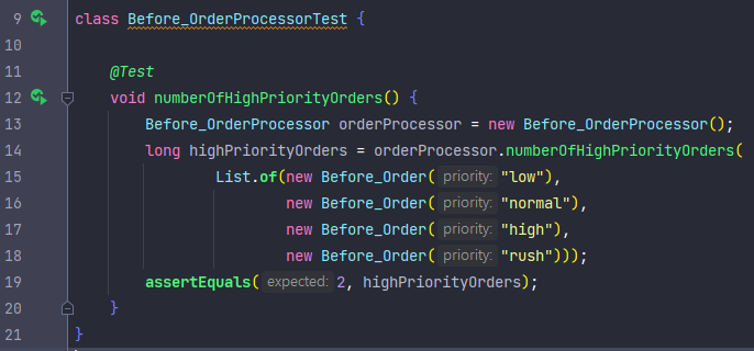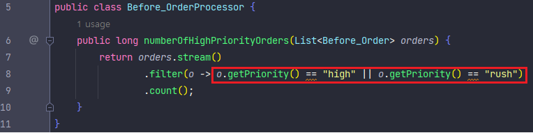 - OrderProcessor 클래스 numberOfHighPriorityOrders() 함수는