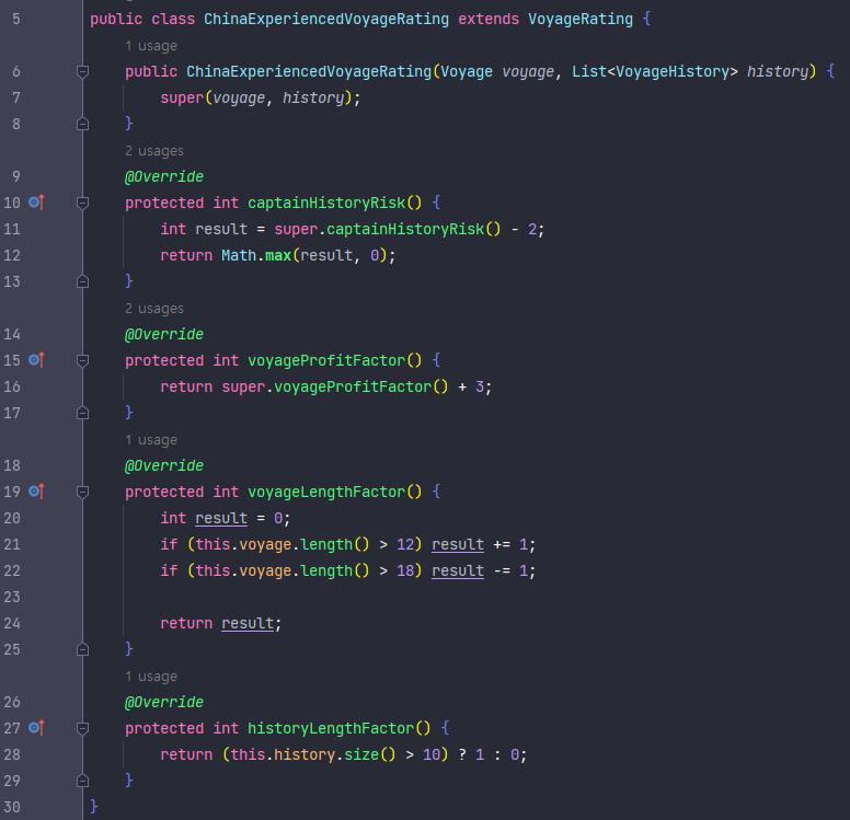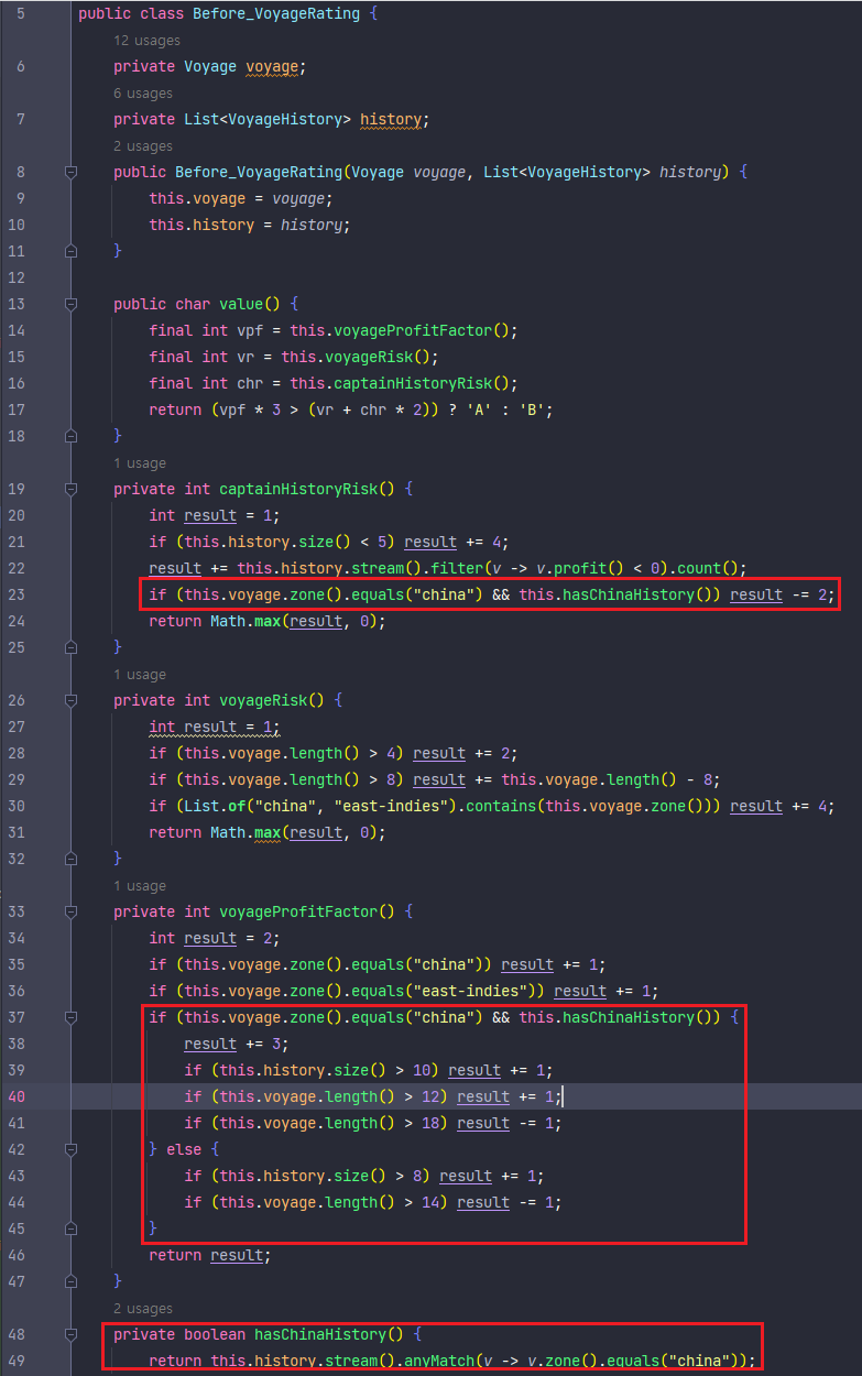 - china와 관련된 코드는 ChinaExperiencedVoyageRating 클래스로 모은다.