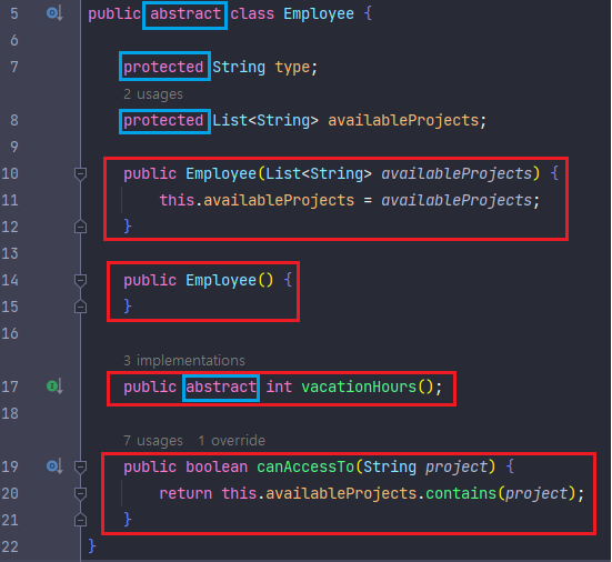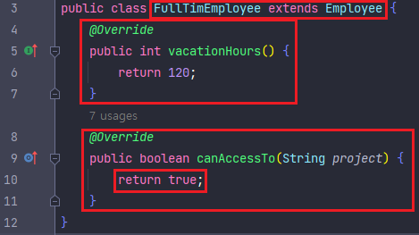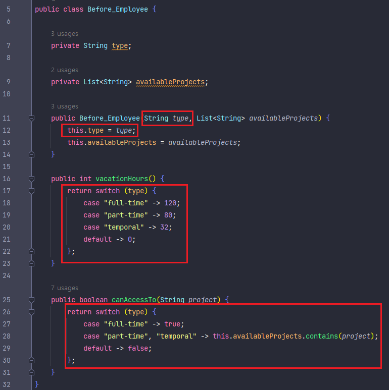 - vacationHours(), canAccessTo() 메소드는 필드인 type 에 따라 각기 다른 동작을 수행한다.