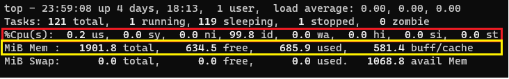 빨간색 박스로 표시된 %Cpu(s)라는 영역은