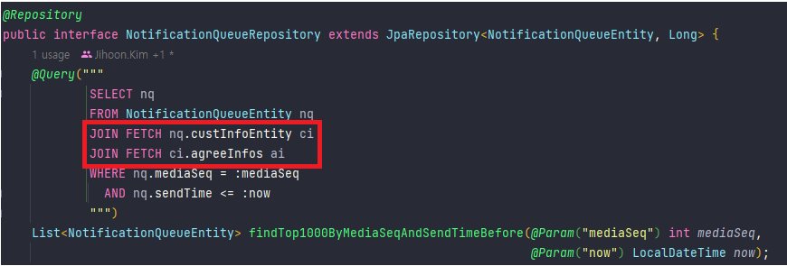예를 들어, 특정 조회에서 JOIN FETCH를 사용하여 관련 데이터를 한 번에 가져오고,