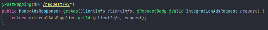 externalAdsSupplier.getAds(clientInfo, request)를 호출한 후,
