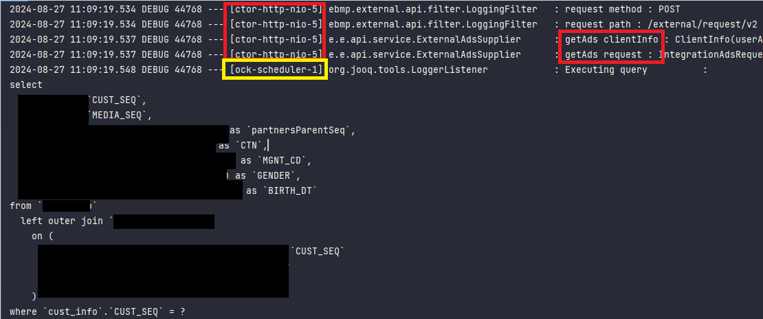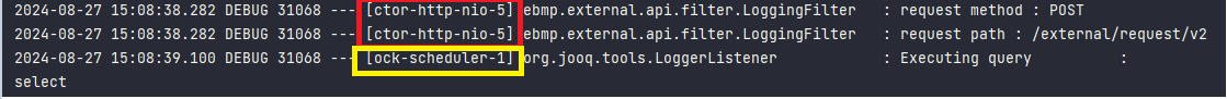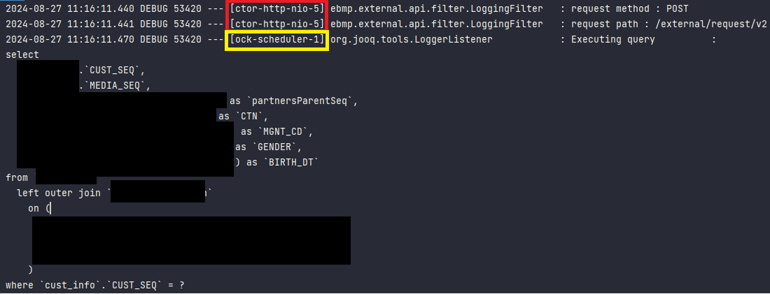 이 때문에 쿼리 관련 로그가 block-scheduler-1 스레드에서 찍히는 것이다.