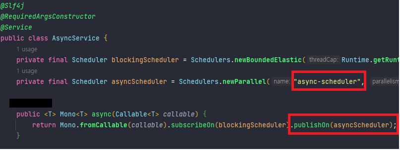 async 메소드의 subscribeOn(blockingScheduler) 설정에 따라
