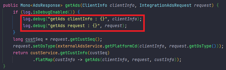 그래서 이 메소드에서 생성되는 로그를 필터링하여 로그의 혼잡을 줄이기로 했다.