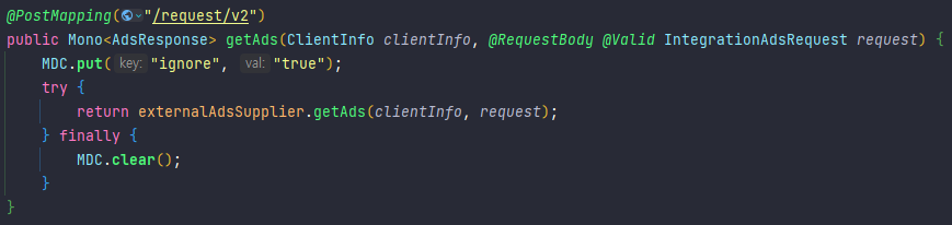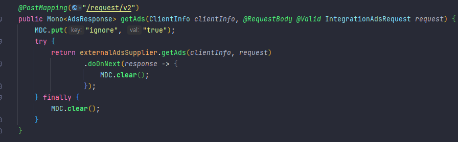 - MDC.get("ignore")는 MDC에서 "ignore"라는 키에 대응하는 값을 가져옴