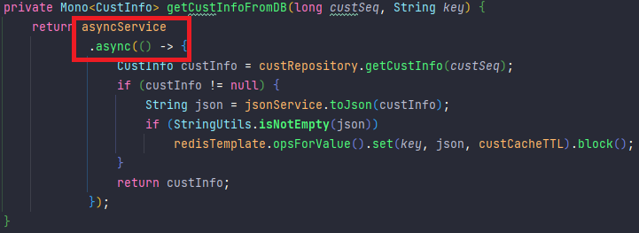 웹플럭스 코드에서 DB 조회하는 코드에는 async() 처리를 했는데
