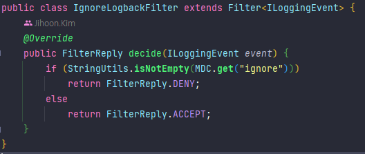 - StringUtils.isNotEmpty(MDC.get("ignore"))는 "ignore" 키에 값이 설정되어 있는지를 확인