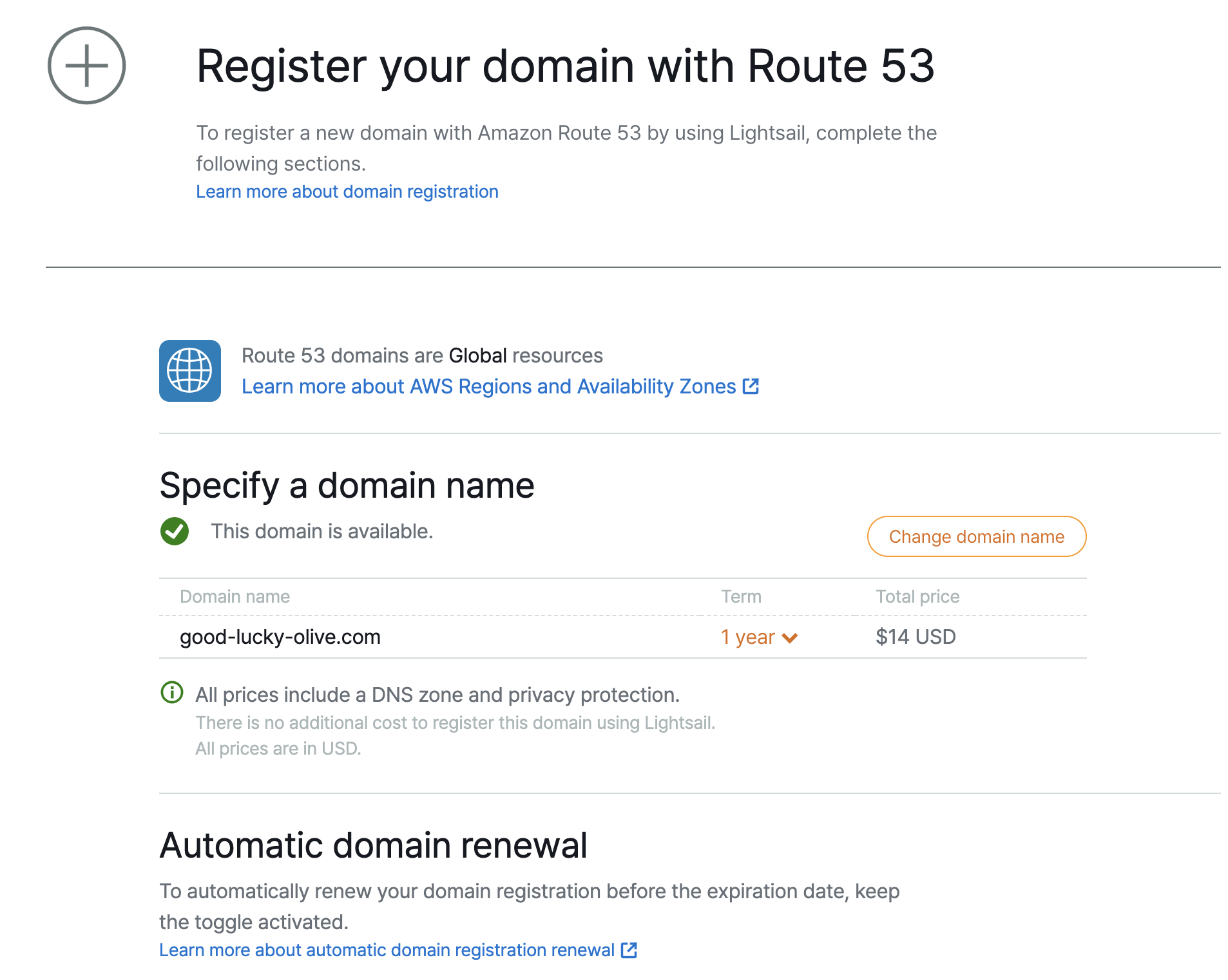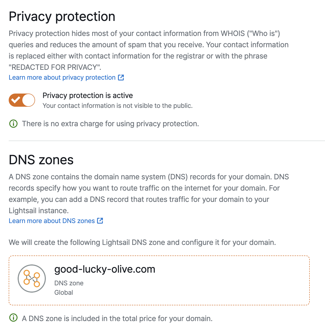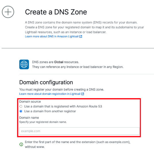 그 외 필요한 각종 정보를 입력해 Lightsail에서 도메인을 생성했다.
