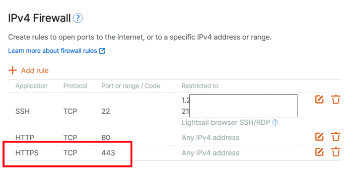 이를 지원하기 위해 HTTPS 트래픽이 기본적으로 사용되는 443 포트를 열어 방화벽 설정을 진행했습니다.