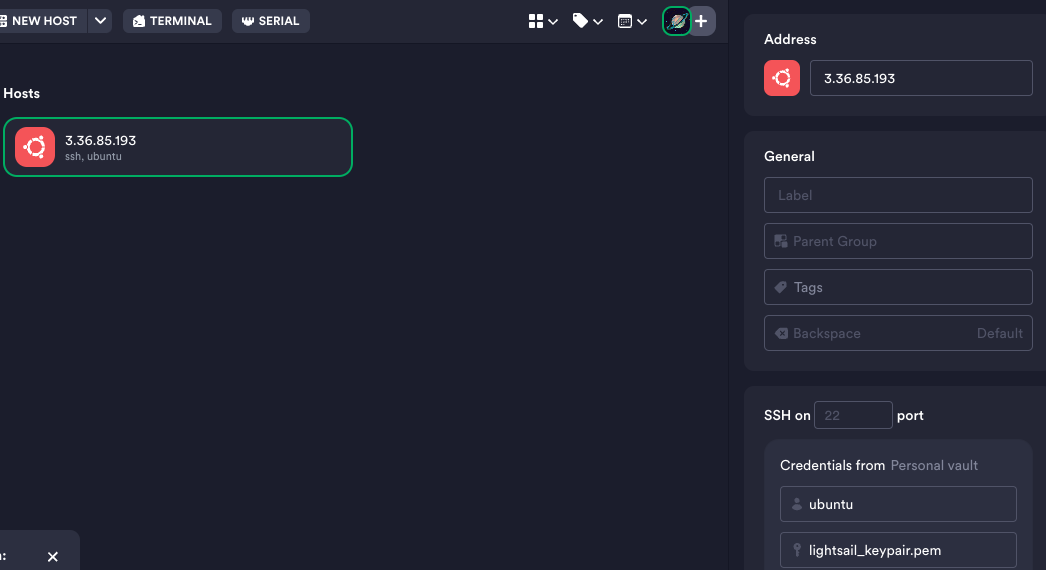 [ SSH 접속은 Termius 이용 ]