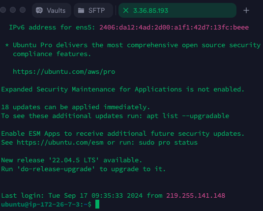 먼저 Termius를 통해 서버에 접속한 후 터미널 창에서 아래와 같이 명령어를 실행했다.