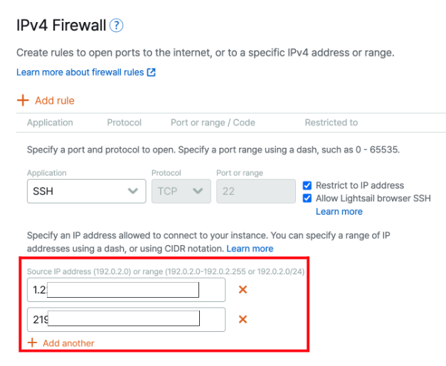 SSH 접속을 내 아이피에서만 접속할 수 있도록 방화벽을 설정하였다.