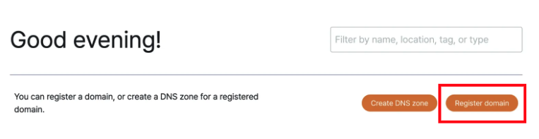 Register domain 버튼을 눌러 도메인을 생성했다.