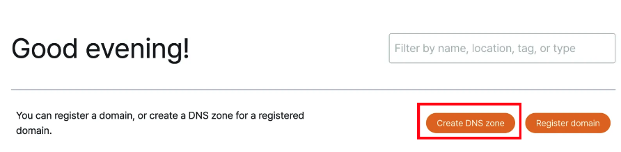 그다음 Create DNS zone 버튼을 눌러 Dns 영역을 생성했다.