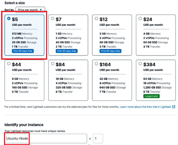 인스턴스 이름은 Ubuntu-Node로 정했다.