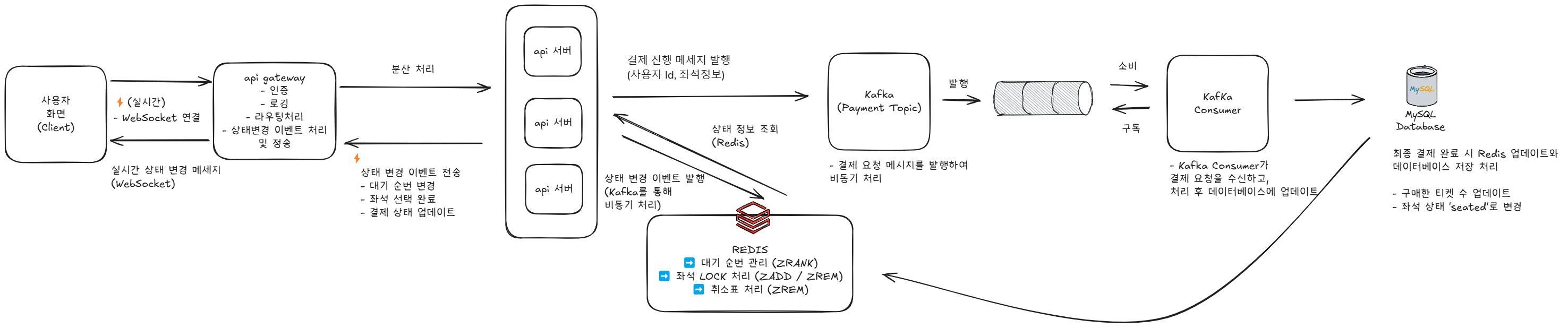 아래는 설계해 본 티켓팅 시스템 전체 아키텍처를 그려본 것이다.