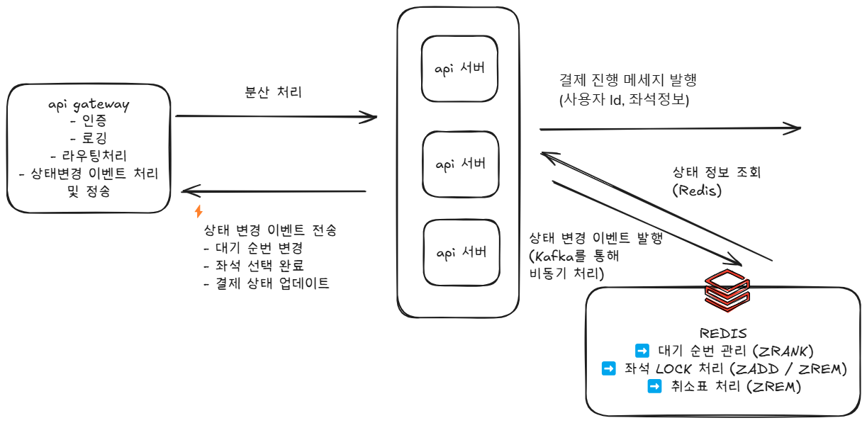 - 서버는 Redis에 좌석 잠금 상태와 5분 TTL을 설정함.
