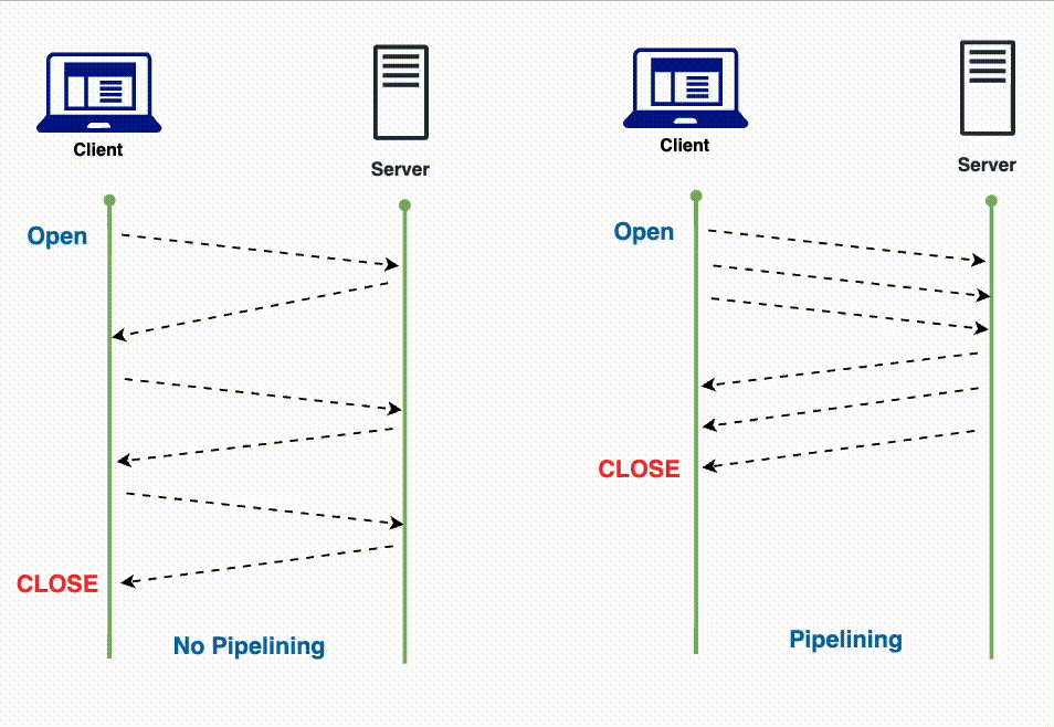 앞선 요청의 응답을 기다리지 않고 다음 요청들을 미리 전송하는 방식입니다.