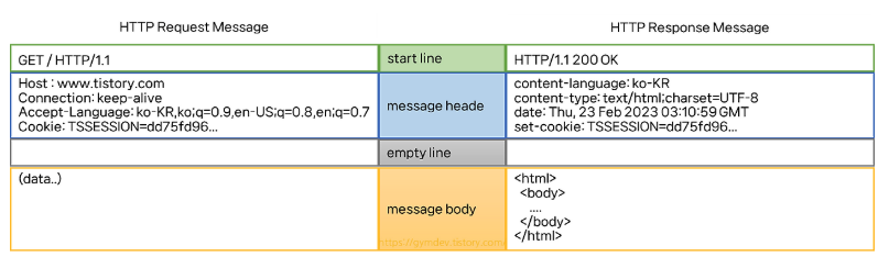 헤더와 바디 구조로 다양한 형태의 데이터를 교환합니다.