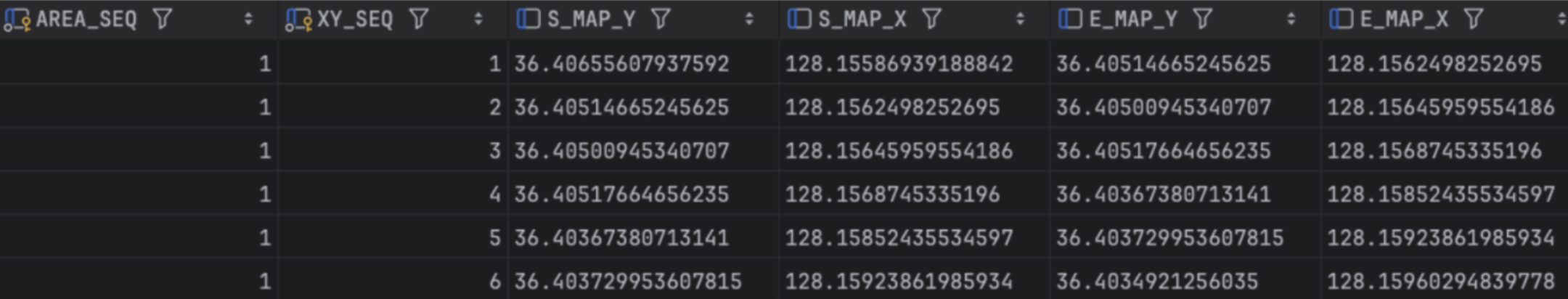 선분 데이터를 기반으로 SQL에서 직접 좌표 계산을 수행했습니다.
